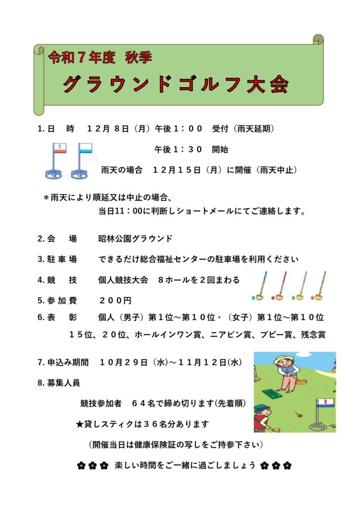 | 12月8日 | 秋季グラウンドゴルフ大会 |