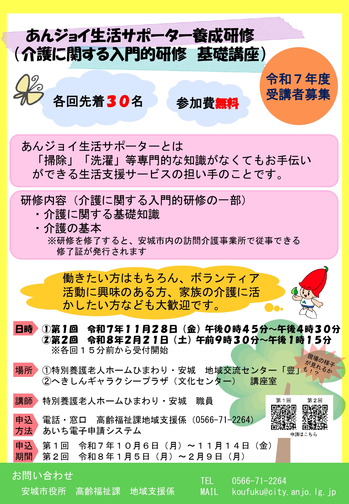 安城市が「あんジョイ生活サポーター養成研修」の参加者を募集しています。