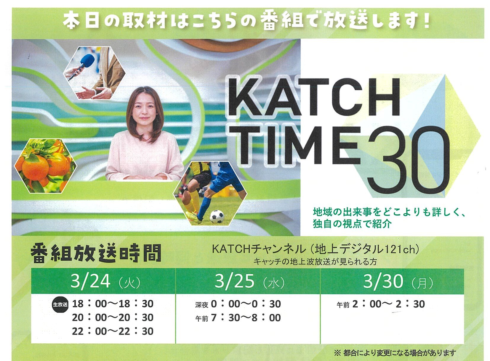 なお、講習会の様子はキャッチネットワークの『KATCH TIME 30』にて放送されます!